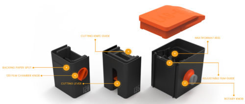 Das 35er-Filmmodul verfügt über eine integrierte Schneideeinrichtung, um nach dem Einspulen den Film von der Filmpatrone zu trennen. Beim 120er-Modul wird das Schutzpapier durch einen lichtdichten Schlitz gezogen, wobei der abgetrennte Film in ein lichtdichtes Abteil gelangt. Nachdem die Filmspule entfernt und über ein Drehknopf der Film wieder freigegeben wird, kann dieser mit dem Drehknopf des Entwicklertanks eingespult werden.