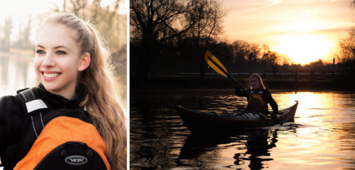 Bild rechts: «Carmen im Kayak». Aufnahme: Panasonic GH5, mit dem Leica Lumix DG Elmarit 2.8–4.0/12–60mm F ASPH O.I.S auf 60 mm // 1/400 sec. // f 4.0 // 200 ISO // vorhandenes Licht // ohne Stativ aus dem Kayak. Postproduktion: Leichtes Nachschärfen und Abdunkeln. Kommentar: Dank AF-C und der hohen Bildrate lassen sich sehr schöne Sequenzen von Menschen oder Tieren in Bewegung realisieren. Ich hatte keine einzige unscharfe Aufnahme in dieser Serie.
