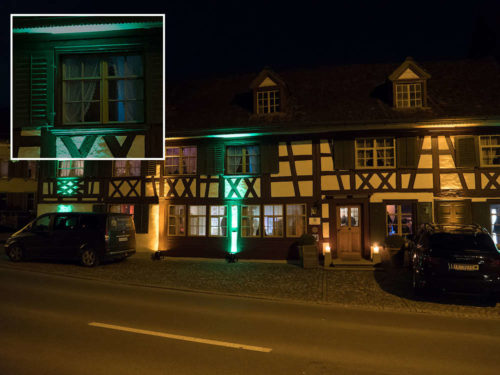 Taverne zum Schäfli in Wigoltingen. Aufnahme: Vorserienmodell der Panasonic GH5, mit dem Leica Lumix DG Elmarit 2.8–4.0/12–60mm ASPH O.I.S auf 12 mm // 1/20 sec. // f 2.8 // 3200 ISO // vorhandenes Licht // ohne Stativ. Postproduktion: Leichte Rauschreduzierung in Lightroom. Kommentar: Das Rauschverhalten der GH5 in höheren ISO-Werten hat sich gegenüber der GH4 markant verbessert.