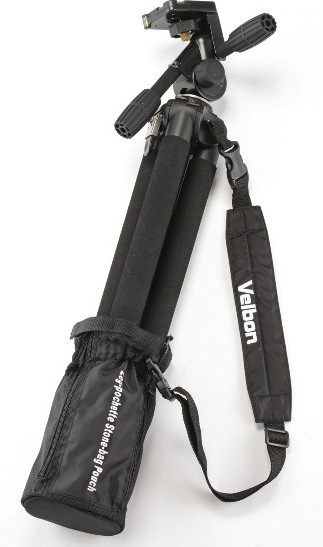 velbon_geo_pochette_smallDer vielseitige Tragebeutel «Pochette», der im Lieferumfang der GEO Stative enthalten ist, lässt sich leicht über die Enden der Stativbeine streifen und erlaubt ein bequemes Transportieren des Stativs auf der Schulter. Bei geringem Gewicht und kleinem Packmass ab 36 cm (GEO E440) ist ein Transport äußerst komfortabel. Der Beutel lässt sich auch als Stone Bag nutzen, um dem Stativ zusätzliche Stabilität zu verleihen.