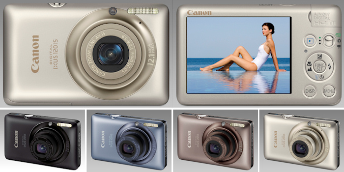 Die superschmale Digital IXUS 120 IS besticht mit ihrem exquisiten Look und passt bequem in eine Hemd- oder Handtasche. Sie ist in den vier Farbausführungen Schwarz, Blau, Braun oder Silber erhältlich und hat ein 6,9 cm (2,7 Zoll) grosses PureColor LCD II.
