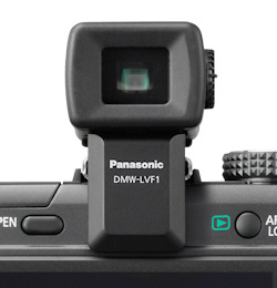 Das wohl wichtigste Zubehör zur GF1 ist der um 90° nach oben klappbare elektronische LiveView-Aufstecksucher DMW-LVF1E, ein praktischer Helfer unter kritischen Aufnahmebedingungen. Er bietet eine 100%-Bildübersicht in einer Auflösung von 202’000 Bildpunkten, eine Suchervergrösserung von 1,04 x (= 0,52x KB) und Dioptrienkorrektur.