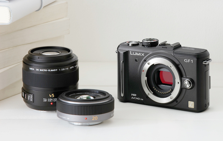 Mit der Lumix GF1 werden das neue lichtstarke 1,7/20mm-Objektiv in flacher Pancake-Bauweise und das Leica-Makro-Objektiv 2,8/45mm vorgestellt. Damit umfasst das Panasonic-Angebot die folgenden sechs MicroFourThirds-Objektive:
