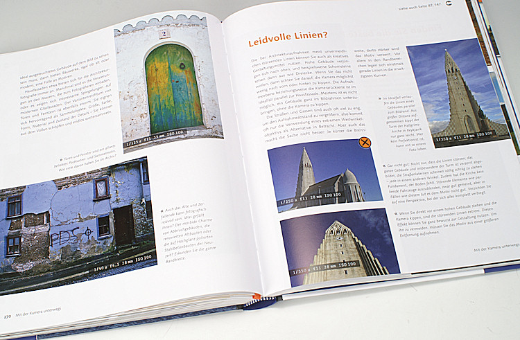 Urlaubsfotos oder Reisefotografie? / Der «urlaubende» Reisefotograf / Andere Länder, andere Sitten / Porträts von Fremden / Urlaubsklischees / Architektur in Szene setzen / Leidvolle Linien? / Finden Sie die beste Perspektive / Landschaft ist überall / Schlechtes Wetter? / Spektakulär enttäuschend? / Klassisch versus unkonventionell / Sind Sie ein Schönwetterfotograf? / Exkurs: Wind und Wetter / Wolkenlandschaften entdecken / Werden Sie ein «Blümchenfotograf» / So werden Ihre Blumenbilder attraktiver
