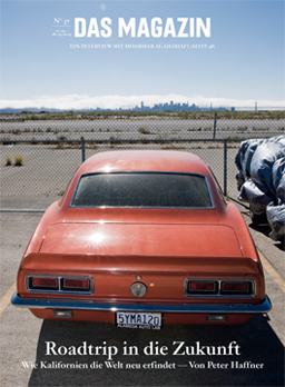Bereits vor einer Woche fanden wir keine wirklich überzeugende Text- Bildreportage in der Sonntagspresse. DAS MAGAZIN lobt Kalifornien in einem vielleicht zu ausführlichen Beitrag von Peter Haffner als Zukunftsland. Illustriert wird die Bestandesaufnahme durch Bilder von Winni Wintermeyer im Stil eines Road Movies. Dann sinkt das Layout von einer Seite auf die andere visuell in mittelmässige Werbung ab, und Peter Haffner plaudert im Text munter weiter.