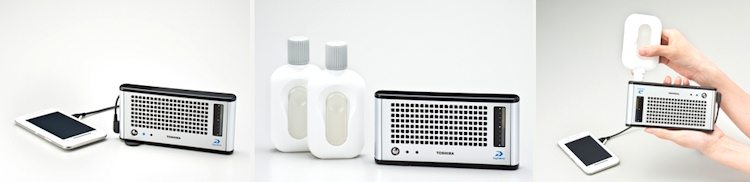 Toshiba Corp. führt als erster grosser Hersteller eine portable Brennstoffzelle ein, mit der elektronische Kleingeräte mit USB-Anschluss, wie MP3-Player und Mobiltelefone – und demnächst wahrscheinlich auch Digitalkameras – unterwegs mit Energie versorgt werden können.