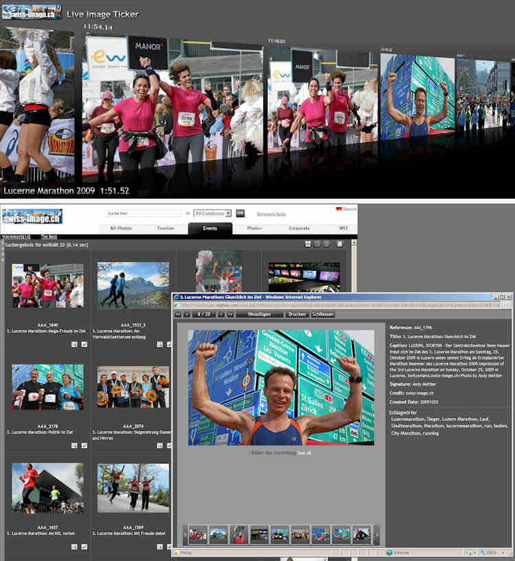 Werden Live-Fotos von wichtigen Veranstaltungen auf Webseiten bald zum Standard gehören? Ja, glaubt Andy Mettler von swiss-image.ch nach der Weltpremiere des ‚Live Image Ticker‘, einer Eigenentwicklung zur schnellen Bildübertragung von Eventbildern aus der Profi-Digitalkamera direkt ins Internet. swiss-image.ch hat den ‚Live Image Ticker‘ erstmals am 3. Lucerne Marathon 2009 eingesetzt. Die liveartige, flashanimierte Online-Bildstrecke stiess auf grosses Interesse.