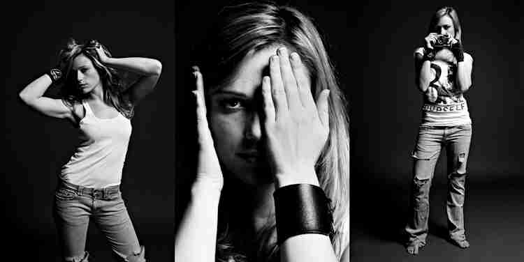 Der Zürcher Beauty- und Modefotograf Adrian Portmann brachte mit seinem tiefen Wissen und Kennen der Modebranche alle ins Staunen. In der äusserst spannenden Einleitung stellte er jene Modedesigner, Stylisten, Visagisten und Models vor, die die Modefotografie nachhaltig beeinflusst haben bzw. immer wieder beeinflussen. Auch zeigte der souverän wirkende Portmann eigene Bilder und gab so einen interessanten Einblick in seine Arbeitsweise mit Kunde und Model. Anschliessend ging es zum praktischen Teil über. Hier galt es, zusammen mit dem Model eine Dreierserie in schwarzweiss zum Thema«Jeans – A Tribune to Richard Avedon» zu fotografieren. Jeder hatte für einige Minuten die Möglichkeit, alleine mit dem Model zu arbeiten, während sich die Wartenden von den unzähligen Modemagazinen aus Portmann’s Sammlung inspirieren lassen oder einfach zuschauen und lernen konnten.