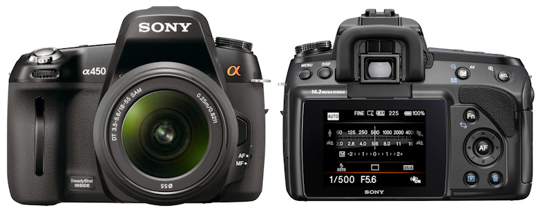 Sony erweitert ihr Spiegelreflexangebot durch das Mittelklassemodell Alpha 450, die sich durch ein einfaches Bedienkonzept auszeichnet und zahlreiche Automatikfunktionen, Motivprogramme, aber auch Features für höhere Ansprüche, wie einen Serienmodus für bis zu 7 Bildern pro Sekunde oder die manuelle Fokussierhilfe im Live View Modus bietet. Weiter ist sie in der Lage automatisch HDR-Bilder zu generieren, sie verfügt über das Sony Bildstabilisierungssystem «Steady Shot» und ermöglicht mit der «Stamina»-Spannungskontrolle bis zu 1’050 Aufnahmen pro Akkuladung.
