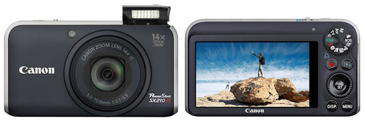 Die in Schwarz, Purpur oder Gold erhältliche PowerShot SX210 IS ist mit einem original Canon 28-mm-Weitwinkelobjektiv mit 14fachen Zoombereich (KB = 28-392 mm) und optischem Bildstabilisator ausgestattet. Die Aufnahme erfolgt über einen 1/2,3“ grossen 14,1 Megapixel CCD-Sensor, und die Bilddaten werden im DIGIC-4-Bildprozessor verarbeitet. Neben vielen Funktionen für Fotos mit hoher Detailpräzision gibt es auch einen HD-Movie-Modus mit 720p Auflösung und Stereotonaufzeichnung.