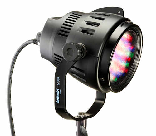 Das Kobold-LED Beleuchtungssystem besteht aus Leuchte mit Hochleistungs-LED’s und Netzgerät und ist in zwei Varianten lieferbar, LE 350C für farbiges Licht (RGBA) und LE 350-W für weisses Licht. Die sehr hohe Lichtleistung kann mit einer 400 W-Halogenleuchte verglichen werden.