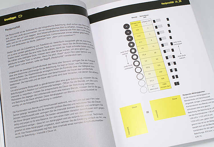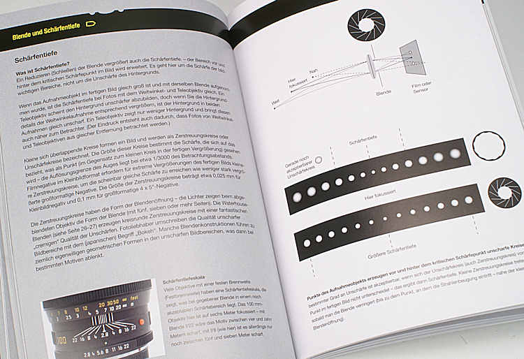 Auf einem knappen Viertel geht der Autor auf die Grundlagen ein, auf die Physik des Lichtes, auf Histogramm und Kontrast, auf den Zusammenhang zwischen Verschlusszeit und Blende, Blende und Schärenfentiefe, Kontrastumfang, Belichtungsindex – und alles, was man zum Thema «Belichtung» wissen muss.