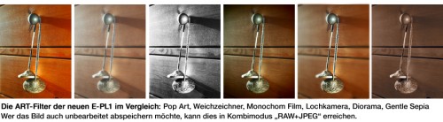 Als Feature der semiprofessionellen Olympus E-30 (DSLR) wurden sie das erste mal vorgestellt: die «Art Filter». Dabei handelt es sich um die Möglichkeit, Fotos schon bei der Aufnahme digital zu verändern. Mit der Olympus PEN E-P2 sind es mittlerweile acht ArtFilter, welche in Foto-Foren wie zum Beispiel Flickr schon heute eine beachtliche Fangemeinde begeistert: