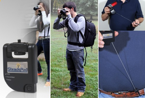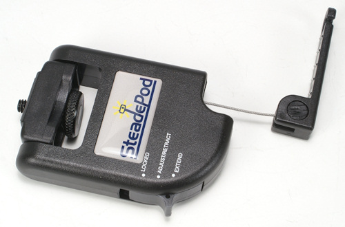 Der SteadePod ist vielseitig einsetzbar und kann schnell an verschiedene Kamerahöhen und -winkel angepasst werden. Das Schnurstativ ist mit einem ausziehbaren Edelstahl-Seil ausgestattet. Mit einer Sperrvorrichtung kann die Kamera exakt in der gewünschten Höhe fixiert werden.