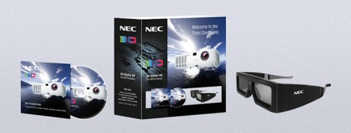Bereits im Mai 2010 präsentierte NEC Display Solutions eine Reihe neuer Projektoren, mit denen dank der DLP Link Technologie in Kombination mit einer aktiven LCD Shutter-Brille 3D-Projektionen möglich sind. Aufgrund des Wegfalls von Spezialleinwänden oder -filtern für die Wiedergabe sowie eines Emitters für die Synchronisation der Brille ist diese Lösung besonders kostengünstig. Für das ab Juli zusätzlich erhältliche 3D-Starter-Kit kooperiert der Hersteller mit einer Reihe von namhaften Content Providern und ermöglicht so Anwendern, einfach und schnell erste und zugleich vielfältige 3D-Erfahrungen zu sammeln.