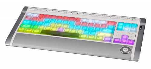 Wer mit (mehreren) Bildbearbeitungs-, Videoschnitt- oder Layout-Programmen arbeitet, kommt ohne Tastaturbefehle nicht aus. Aber wer kann sich schon alle Shortcuts dieser umfangreichen Programme merken? Dem Gedächtnis auf die Sprünge hilft die USB-Tastatur U5 von Luxeed. Sie verfügt über LEDs, die jede einzelne Taste in einer von sieben verschiedenen Farben erleuchten lassen kann. So können die wichtigsten Befehle, z.B. für verschiedene Programme, farblich auf der Tastatur markiert werden. Die Tastatur ist weiss und schwarz erhältlich. Beim dem abgebildeten weissen Modell leuchten die ganzen Tasten, beim schwarzen Modell sind die Tasten schwarz und die Farben leuchten dezent durch die ausgesparte Beschriftung.
