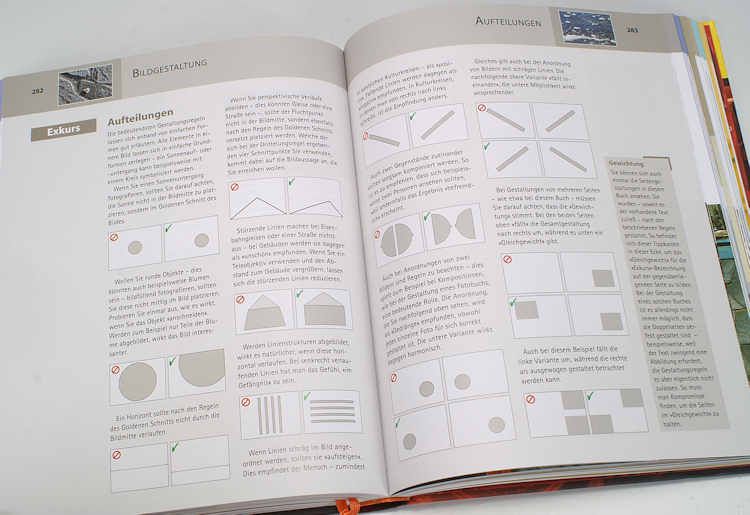 416 prallvolle Seiten. Prallvoll, nicht bezüglich der Gestaltung, die übrigen Gradias beim Schreiben im gleichen Aufwasch mit Adobe Indesign pflegt, sondern prallvoll mit Wissen. Er versteht es einerseits komplexe Dinge einfach und gut verständlich zu erklären und lässt anderseits nichts weg – auch komplizierte Dinge nicht, um die sich andere Autoren vielleicht eher drücken würden. Im Gegenteil: Eine zusätzliche Aufwertung des Buches sind die 54 Exkurse, in denen Spezialthemen und komplexere Zusammenhänge losgelöst vom übrigen Buchinhalt erklärt werden. Sein kompetenter Schreibstil hat Gradias schon in verschiedenen früheren (Nikon-)Büchern bewiesen: Kurz, und klar. Dabei spart Gradias nicht an Schemenzeichnungen, Tabellen und Detailabbildungen, um Sachverhalte klarer und verständlicher darzulegen und das Buch auch optisch «lesbarer» zu gestalten.
