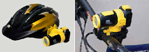 Zur ATC9K gibt es noch verschiedenes Zubehör, zum Beispiel eine Helmmontage-Einheit, ein spezielles Gurtband oder eine Befestigung an Fahrrad- oder Motorradlenkern.