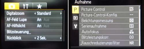 Weiterhin fehlt ein Display im Sucher mit Anzeige der wichtigsten Einstellungen, mittlerweile Standard bei allen DSLRs. Was nützen mir praktische Drehräder, wenn ich die Kamera vom Auge nehmen muss, um die Einstellungen über einen (mehr oder weniger) spiegelnden Display kontrollieren zu können. Immerhin ist das bei der Nikon einfacher und sicherer, durch den gegenüber der Canon deutlich schärferen Display und grössere Symbole.