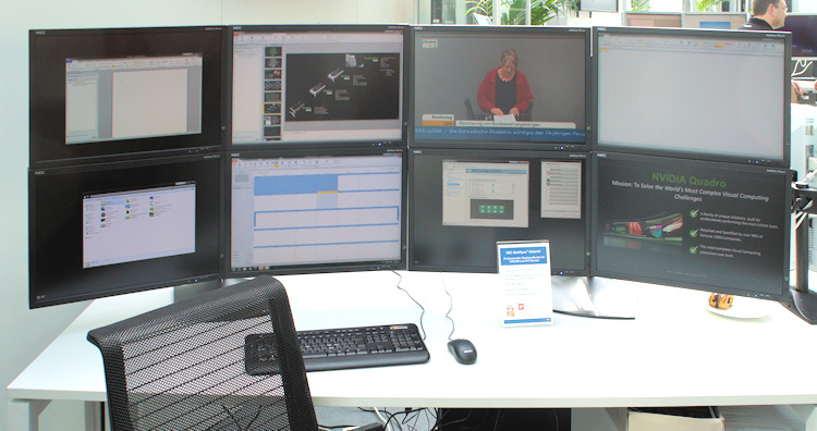 Mehrbildschirm-Arbeitsplatz für CAD, DTP oder Videobearbeitung mit 8 NEC Multisync PA241W