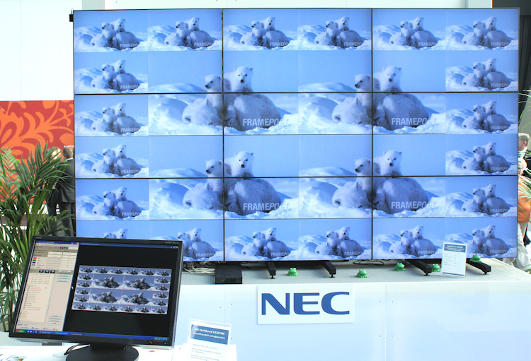 Digital Signage war am NEC Competence Day ein wichtiges Stichwort. Neben vollkommen neuen Lösungen führt NEC Display Solutions erstmals einen 46 Zoll LC Public Display mit extrem schmalen Rahmen für neuartige Videowandinstallationen vor. Dieser ist unter anderem mit einem neuen Feature für gleichmässige Helligkeitsverteilung ausgestattet.