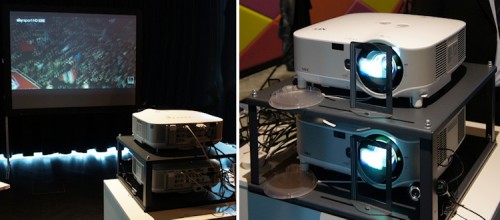 Effiziente Netzwerksteuerung und -überwachung von Projektionslösungen standen dieses Jahr im Mittelpunkt der Pro AV-Themenwelt. Neben der weiterentwickelten NEC Stacking Solution präsentierte der Hersteller unter anderem den Projektor NP 3250 mit 5000 ANSI-Lumen und Wechselobjektiven. Davon können bis zu vier Projektoren durch pixelgenaue Bildüberlagerung eine höhere Lichtleistung erreicht werden oder es lässt sich mit zwei Projektoren nach dem Polarisationsverfahren ein frappanter 3D-Effekt. erzielen