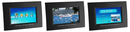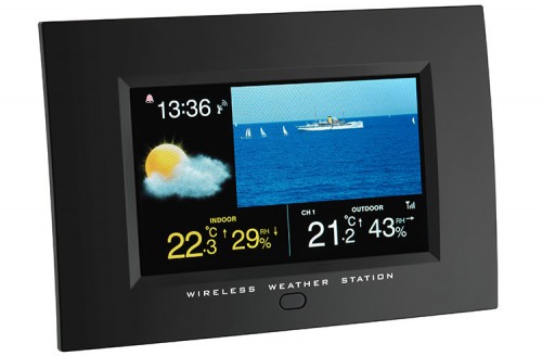 - Dia-Show (mit 13 Übergangseffekten, einstellbarer Bildanzeigedauer und Darstellungsformat), Wetterstation mit kabelloser Übertragung der Aussentemperatur und Luftfeuchtigkeit über bis zu 3 Sender (868 MHz., max. 30 m),