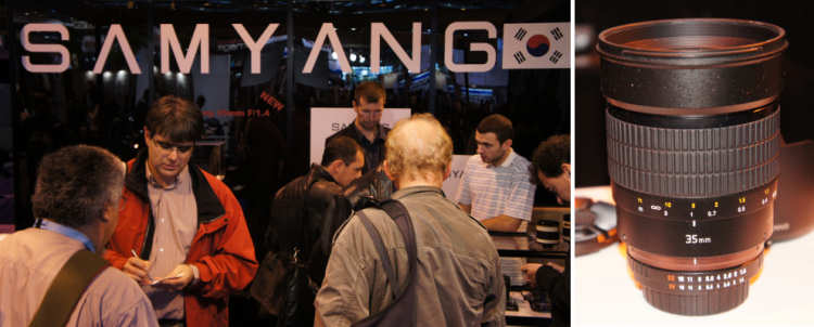 Als Besonderheit und Weltpremiere zum Salon in Paris zeigte Samyang ein 1:1,4/35 mm UMC Aspherical unter der Plexiglashaube. Fertig sei es noch nicht, doch dürfte das hochlichtstarke Weitwinkelobjektiv in der zweiten Jahreshälfte 2011 zu erwarten sein. Obwohl in Europa (noch) kaum bekannt, soll der Hersteller über eine bereits 40jährige Tradition und Erfahrung in Korea verfügen.