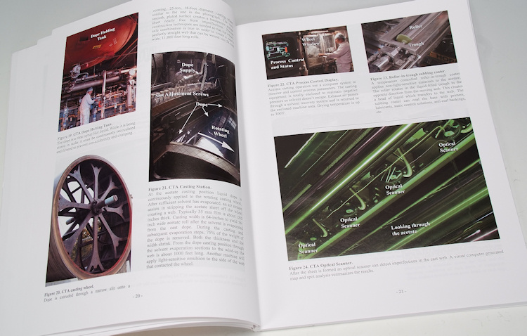 Im digitalen Zeitalter wird sich bald niemand mehr daran erinnern, wie Filme hergestellt wurden, dass dazu Silber und Gelatine notwendig waren und dass der gesamte Herstellungsprozess ein streng gehütetes Fabrikationsgeheimnis war. Das Buch «Making Kodak Film» erklärt, welche chemischen Substanzen und Anlagen es dazu brauchte, erklärt die komplizierten Fabrikationsprozesse, wie z.B. das Beschichten des Trägermaterials mit den lichrempfindlichen Emulsionen, zeigt wie das Material konfektioniert wurde und enthält viel theoretisches Wissen über die Filmtechnologie, die im digitalen Zeitalter bald vergessen sein wird.