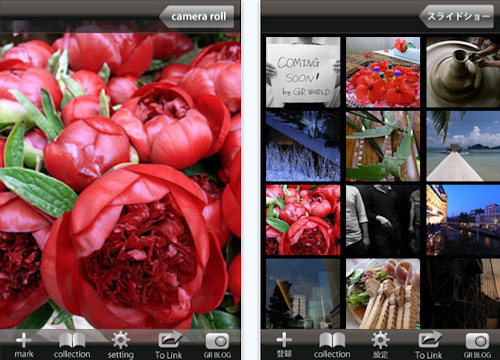 Fotografen in aller Welt halten besondere Momente mit ihrer GR Kamera fest und teilen diese auf Flickr. GR World vernetzt nun die GR-Community: unabhängig von Ort oder Zeit können Bilder beispielsweise im Slideshow-Modus angeschaut werden. Mit der App können Fotos darüber hinaus nach Kategorien geordnet oder Lieblingsfotos mit Bookmarks versehen werden.
