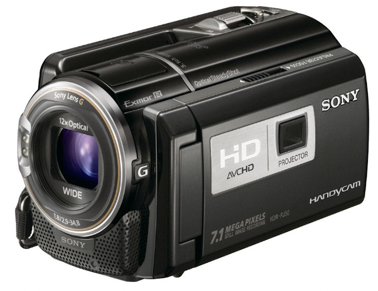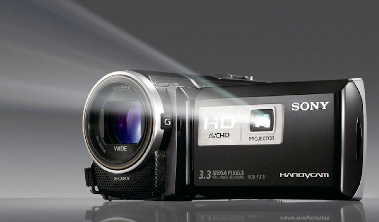 Die HDR-PJ50E mit 240 Gigabyte Festplatte, die HDR-PJ30VE mit 32 Gigabyte Flash-Speicher und die HDR-PJ10E mit 16 Gigabyte Flash-Speicher besitzen einen eingebauten ultra-kompakten LED-Videoprojektor (DMD – Digital Micromirror Device). Er ist in das drei Zoll (7,6 Zentimeter) grosse Clear Photo LC-Display integriert und projiziert Videos und Fo-tos mit 10 Lumen Helligkeit und einer Grösse von bis zu 150 Zentimetern (Diagonale) auf jede Projektionsfläche. Integrierte Stereolautsprecher und ein digitaler S-Master-Verstärker sorgen für die passende Klangwiedergabe.