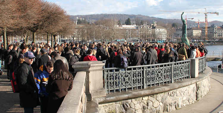 Die Beteiligung war offensichtlich weitaus grösser als sich die Organisatoren träumen liessen. Am Bürkliplatz in Zürich besammelten sich weitaus mehr Teilnehmer als die rund 300 vorangemeldeten, und viele werden sich noch im Lauf des Tages spontan zum Mitmachen entschieden haben.
