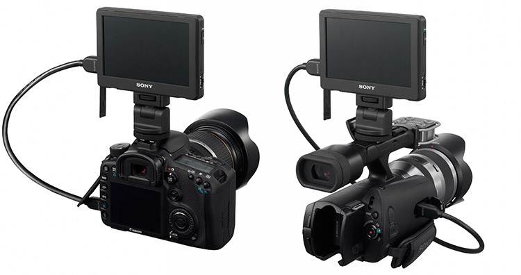 Der CLM-V55 ist nicht nur für  Systemkameras und Camcorder von Sony geeignet, sondern ebenfalls für Kameras anderer Hersteller. Zwei mitgelieferter Adapter stellen sicher, dass der Zusatzmonitor an einem KameraRig oder Zubehörarm sowie Standard-Zubehörschuhe angebracht werden kann. Das Bildsignal erhält der CLM-V55 über das ebenfalls im Lieferumfang enthaltene HDMI-Kabel (ca. 0,45 Meter).