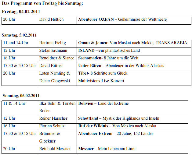 Nur unweit von Basel findet vom 4. bis 6. Februar 2011 das «grösste europäische Reportage-Festival Europas» statt. Die «Munodologia» konnte letztes Jahr über 17’000 Natur-, Abenteuer- und Fotobegeisterte faszinieren. Mit dem diesjährigen Programm erwarten die Organisatoren im Konzerthaus einen noch grösseren Besucherstrom.