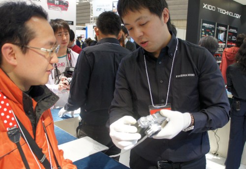 Unweit vom Haupteingang präsentiert Heimspieler Fujifilm seine Produkte. Publikumsmagnet hier ist ganz klar die Finepix X100, welche mit ihrem Retrodesign bereits seit der Photokina auf mancher Wunschliste steht. Optisch wirkt sie wie ein Klassiker, und technologisch hat sie durchaus die Nase vorn. Vor allem das hybride Suchersystem begeistert, und der APS-C grosse 12-Megapixel-Sensor in Verbindung mit der RAW-Aufzeichnung verspricht eine Bildqualität, die höchsten Ansprüchen gerecht werden dürfte. Sie wird ja auch nicht ganz billig werden. In Japan wird sie mit Verkaufsstart am 5. Mai 130‘000 Yen kosten (das sind rund 1‘500 Franken), wobei die Europäer noch bis im Sommer ihre Vorfreude geniessen dürfen.