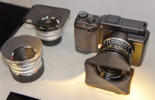 Am Stand von Kenko gibt es tatsächlich den Prototyp einer spiegellosen Systemkamera zu sehen, die mit einem C-Bajonett versehen ist. Kenko bietet ein breites Sortiment an Spezialobjektiven, die für Video- und Überwachungskameras konzipiert sind und die sich auch auf dieser Kamera verwenden lassen. Technische Einzelheiten gibt es noch nicht, und an eine Markteinführung sei frühestens für 2012 zu denken.