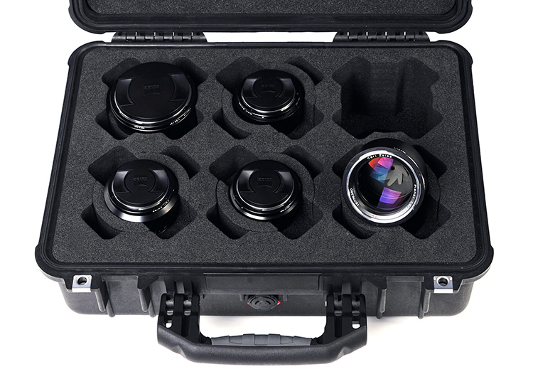 Die fünf Objektive werden in einem speziellen wassergeschützten Koffer (gemäss IP67-Standard) ausgeliefert, der Platz für sechs Objektive bietet. Da jedes Objektiv verschiedene Masse und ein unterschiedliches Gewicht aufweist, sorgt eine besondere Einlage für die passende Kofferaufteilung und den optimalen Schutz der Objektive.