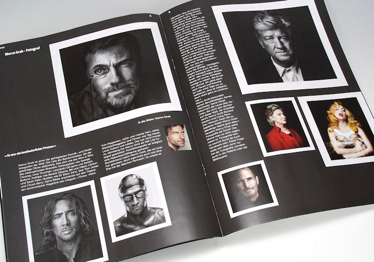 In der Heftmitte findet der Bildteil der Ausgabe statt, diesmal mit einem Portfolio des bekannten Peoplefotografen Marco Grob. Die sieben gezeigten Porträts sind Spitzenbilder, was Ausdruck, Bildgestaltung und Lichtführung anbelangt. Wahre Kunstwerke, die es verdient hätten grösser gezeigt zu werden.