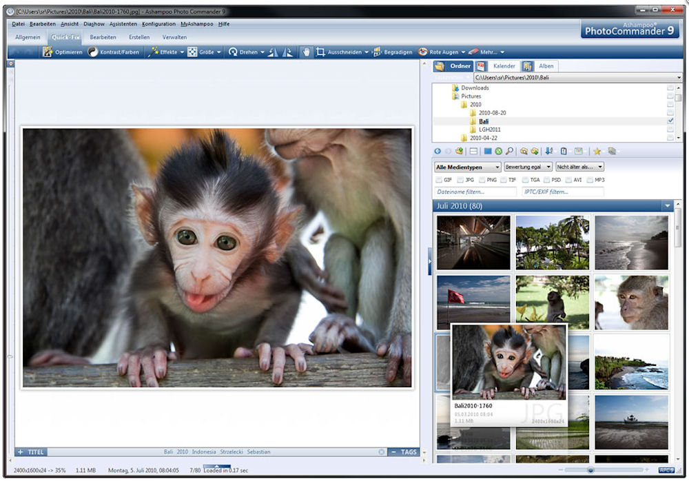 Noch nie wurde soviel fotografiert wie heute. Was sich da alles auf einer Speicherkarte ansammelt, ist unüberschaubar! Wer keine Organisations-Software benutzt findet sich im Megabyte-Schlamassel bald nicht mehr zurecht. Die Neuversion des Ashampoo Photo Commander 9 ist bestens geeignet für die Verwaltung, Optimierung, Bearbeitung und Präsentation von Digitalfotos und Multimedia-Dateien.