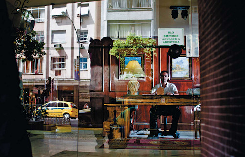 Portier. Ein Beruf, der in Europa praktisch nicht mehr existiert. Nicht Portier eines Hotels oder eines Villenviertels, sondern Portier eines Miethauses, oder besser gesagt, dessen Aufseher. In Lateinamerika ist dieser Beruf weit verbreitet, besonders in Brasilien. Ein Klima der Unsicherheit gewohnt, hat sich die brasilianische Mittelklasse in goldene Käfige zurückgezogen. Dort, wo einige einen einfachen Schlüssel oder einen Code für den Zugang zu einem Gebäude benutzen, bezahlen sie Personen für die Bewachung ihrer Wohnungstüren. Es ist sinnbildlich für dieses Land, dass das grosse Angebot von billiger Arbeitskraft zu einem Boom von Dienstleistungsjobs wie diesem führt. Stellvertretend für diese Art von Berufen wollte ich einige Portiers des Copacabana-Quartiers in Rio de Janeiro vorstellen. Eingesperrt hinter Gittern, in einem Büro, warten sie …
