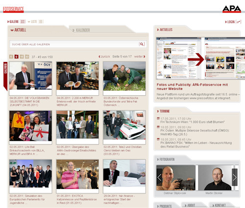 Das APA-Fotoservice erscheint mit einer neuen Präsenz im Internet – mit neuer URL www.apa-fotoservice.at, neuem Design und neuen Funktionalitäten. Inhalte und Angebot der bisherigen Website www.pressefotos.at werden in Zukunft auf www.apa-fotoservice.at integriert.
