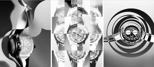Plaza Watch ist das tonangebende Magazin der Uhrenbranche und versucht mit kreativer Fotografie Akzente zu setzen. Während der Projektbesprechung mit der Redaktion entstand die Idee, die ästhetischen Fragmente von grossen Armbanduhren avantgardistischer Produzenten zu dramatisieren. Mit einer Reihe positiver und negativer Schnitte sind so die Skizzen der Objekte entstanden, welche auf groben Papier mit sich laufend ändernden, weichen Schatten fotografiert wurden. Die Arbeit ist im Affekt entstanden und nimmt keinen historischen Bezug. Durch die natürliche Haptik des Untergrundes, des groben Lichts und des handwerklichen Schnittmusters entsteht jedoch ein urtümlich spontaner Reiz welcher auch einigen Arbeiten von Man Ray zu Grunde liegt. Anstatt sich aber mit traditionellen fototechnischen Möglichkeiten zu limitieren, wurde das Material so weit forciert, dass es in elektronischen Medien interaktiv einbezogen werden kann.