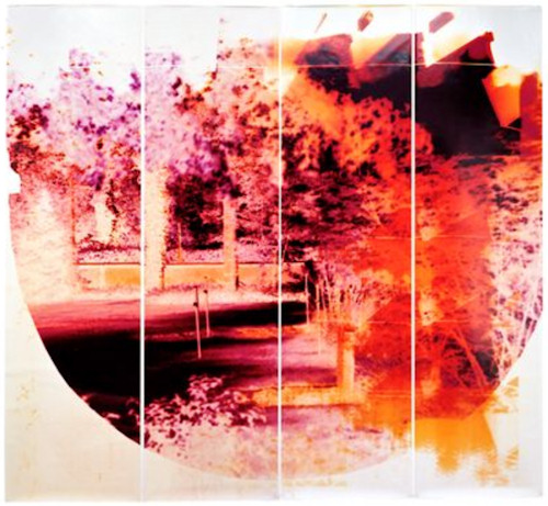 Alles an diesem Bild ist aussergewöhnlich, seine Masse mit von 6,76 auf 7,32 Meter, seine komplementären Farben, sein ungewöhnliches Motiv und vor allem seine Entstehungsgeschichte. Am Morgen des 29. Mai 2005 fanden sich 120 Besucherinnen und Besucher zum Gottesdienst in der Kirche St. Arbogast in Oberwinterthur ein. Durch eine Lichtschleuse hindurch wurden sie in den verdunkelten Kirchenraum geführt, der durch ein kleines Loch im Fenster des südlichen Seitenschiffs in eine Camera Obscura, eine Lochkamera, verwandelt worden war. Ergriffen lauschten die Kirchgänger der Predigt des Pfarrers, die von Jona im Bauch des Wals erzählte und unterbrochen wurde von Chorgesängen, die in der Dunkelheit eindringlich durch den Kirchenraum hallten. Und während sie da sassen, entstand auf der gegenüberliegenden, mit lichtempfindlichen Papierbahnen überzogenen Kirchenwand ein geheimnisvolles Bild, in dem sich Innen- und Aussenraum überlagern. Riesig ist das damals entstandene Bild mit seinen fast fünfzig Quadratmetern. Bäume sind darauf zu sehen, aber auch Spuren der Kirchenarchitektur und der Bänke. Sogar die Köpfe der Kirchenbesucher zeichnen sich auf dem Bild ab. Die Farben des Bildes – Gelb, Rot und Schwarz – erinnern an die Geschichte von Jona und dem Wal, in der das lebensverheissende Rot dem Fisch zugeordnet ist, das Gelb hingegen für die Kraft Gottes steht. Religiöse und künstlerische Dimension verschmelzen im Kirchenbild, die Kirche ist zur Dunkelkammer geworden, in der das Licht die Welt verewigt, die Bildwerdung zu einem spirituellen Ereignis wird.