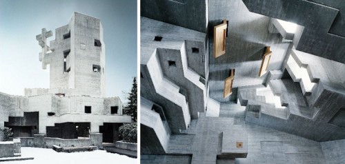 Walter Maria Förderer (1928–2006) war einer der bekanntesten Vertreter des Brutalismus in der Schweiz. Im Zentrum seines architektonischen Schaffens standen in den frühen 1960er Jahren Schulhausbauten, beispielsweise die Hochschule für Wirtschafts- und Sozialwissenschaften St. Gallen, in denen er die plastische Qualität des Sichtbetons programmatisch nutzte. Etwas später spezialisierte sich der Architekt, der auch als Bildhauer tätig war, auf den Kirchenbau, was ihm eine grössere künstlerische Freiheit ermöglichte. Ganz besonders fasziniert mich der skulpturale Charakter dieser Bauten, die räumlichen Raster, die sich durch das Verschachteln und Stapeln kubischer Betonelemente in den Innenräumen ergeben. Dahinter steht eine höchst präzise, liebevolle und aufwendige Verarbeitung des brachialen Materials – eine Handwerkskunst, die heute wohl kaum noch jemand beherrscht. In Bern aufgewachsen, hat mich Förderers Heiligkreuz-Kirche (1967–1971) im Tiefenau-Quartier stark geprägt. Bauwerke wie dieses entsprechen in ihrer Kargheit, die den Besucher auf sich selbst zurückwirft, meiner Idealvorstellung eines sakralen Raumes. Die zurückhaltende Ausstattung des Kircheninneren kontrastiert allerdings mit einer wunderbaren Lichtführung, welche den Raum emotional auflädt.