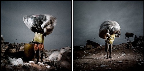 In der prämierten Arbeit porträtiert Fred Merz die 800 bis 1’500 Arbeiter der grössten Müllhalde Südamerikas, des Aterro der Vorstadt Jardim Gramacho. Dort werden täglich 9’000 Tonnen Abfall aus Rio de Janeiro und seiner Agglomeration entsorgt. Die «catadores», wie die Sammler von rezyklierbarem Abfall heissen, transportieren 120 kg schweren Säcke zu einem Depot zur Wiederverwertung, dies unter extremen klimatischen und sanitären Bedingungen. Dementsprechend niedrig ist ihre Lebenserwartung: kaum einer von ihnen wird älter als 48 Jahre.