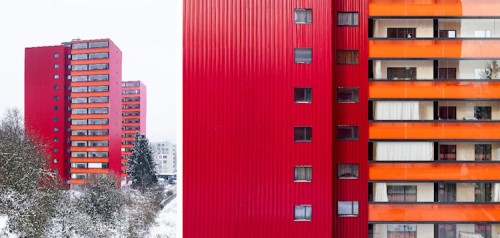 Agglomeration Zürich, Vorstadt, dröhnender Verkehr, vorbeirauschende Züge – mittendrin am zugespitzten Ende eines Dreiecks aus Geleisen und Strassen eine Genossenschaftssiedlung. Wie fotografisch erzählen, was das Büro Galli Rudolf Architekten hier im Zusammenspiel mit einer mutigen Bauherrschaft erreicht hat? Analysieren: Vordergründig ist das Projekt eine Renovation, die den Energieverbrauch senkt und einen besseren Lärmschutz bietet. Mich interessiert nun aber, was Architektur darüber hinaus leisten kann. Von Beginn weg bin ich fasziniert von der Würde, die dieses Projekt ausstrahlt. Von der Würde, die ein stolzes Auftreten ermöglicht und einen Unort in einen Ort verwandelt – einen Ort zum Leben. Dietikon und die Siedlung erhalten einen Auftakt, sie zeigen, dass sie Lebensraum sind, dass sie sich nicht zu verstecken brauchen. Wie kann man ein solch abstraktes Thema in Bildern vermitteln? Diese Frage hat mich zu dieser Serie angetrieben. Aber auch: Mit welchen architektonischen Mitteln wird ein Ort zum Leben geschaffen? In meinen Bildern will ich die grosszügigen Proportionen und die Dimension des «Lebensraums» Balkonschicht zeigen, die subtile Farbigkeit, welche man auf den zweiten Blick erkennt, die sehr sorgfältige Detaillierung, welche eine Hinwendung zu Ort, Haus und Bewohnern erzählt. Alles zusammen erzeugt eine unverhoffte Eleganz, die den Ort zu einem ruhigen, sicheren Pol zwischen den Verkehrsströmen aufwertet. Für mich am wichtigsten war aber, ein Bild zu finden für das neue Wohngefühl an diesem Ort, ein Bild, das über die erstarkte Würde erzählt.