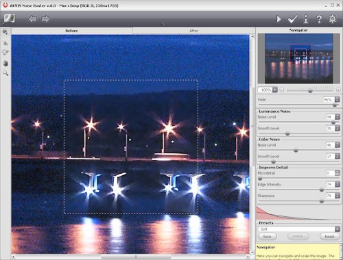Akvis veröffentlicht das Akvis Noise Buster V.8.0 für Windows und Macintosh. Neues in Version 8.0 ist die Unterstützung der GPU Beschleunigung, welche die Bearbeitungszeit wesentlich verringert. Dabei wird anstelle des Zentralprozessors (CPU) der Grafikprozessor eingeschaltet. Zudem ist jetzt auch die Stapelverarbeitung möglich.