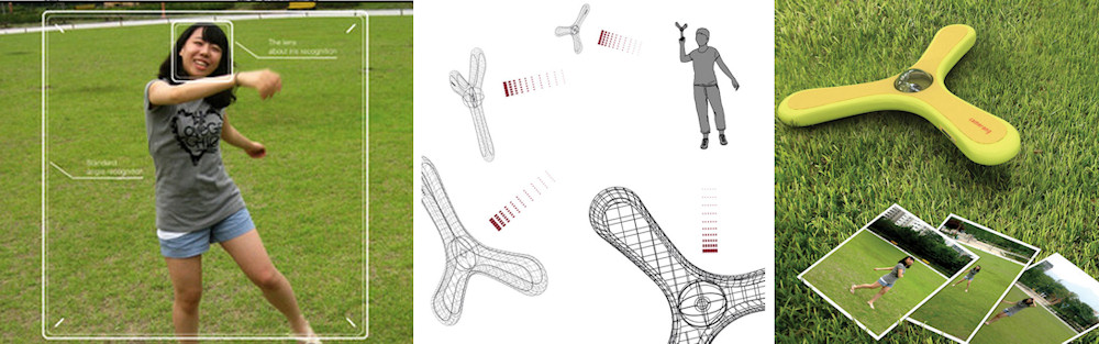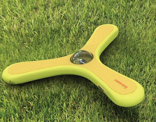 Ein Bumerang – das urgeschichtliche Wurfgeschoss, des (meistens) zu seinem Werfer zurückkehrt – kombiniert mit einer Kamera, gibt einen «Camerang». Einen solchen hat Sangyong Park entworfen, um Luftaufnahmen zu machen. Eine clevere Idee, die anscheinend sogar funktionieren soll. Jetzt heisst es beim Fotografieren nicht nur «bitte recht freundlich» sondern auch «Kopf einziehen …»