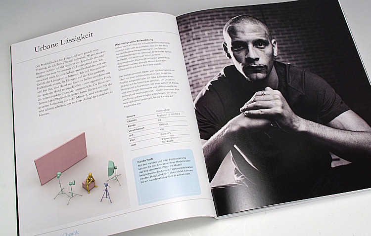Die beiden Autoren haben 40 Porträtsituationen sorgsam ausgewählt und decken damit nahezu jede nur erdenkliche Stilrichtung ab. Das macht das Buch nicht nur extrem lehrreich sondern auch bildmässig vielfältig und interessant. Man kann sich einerseits darin vertiefen und jede der 40 Praxissituationen genau studieren, oder man kann das Buch auch nur durchblättern, die hervorragenden Porträts bewundern und da und dort stoppen: «Wie hat er das bloss gemacht …» Selbstredend, dass das Buch eine Inspirationsbox erster Klasse ist. Die unterschiedlichen Situationen und Verwendungen, das klar beschriebene Knowhow und die vorbildlichen Bilder spornen an zum Selbermachen …