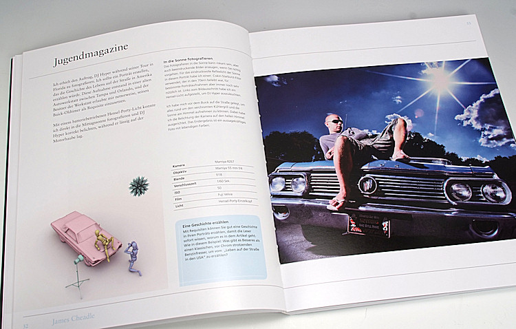 Der zweite Teil des Buches – er macht ein knappes Viertel des Inhalts aus – ist der Theorieteil. Hier verraten die Fotografen, welche Ausrüstung sie verwenden, wie man die Projekte und Aufträge vorbereitet, was es bezüglich Locations zu beachten gibt bis hin zu kompositorischen Grundregeln. Mit einigen Photoshop-Lehrgängen, schliesst das Buch ab und vermittelt damit einen sehr guten Mix von fotografischer Porträtpraxis mit der dazugehörenden Theorie.